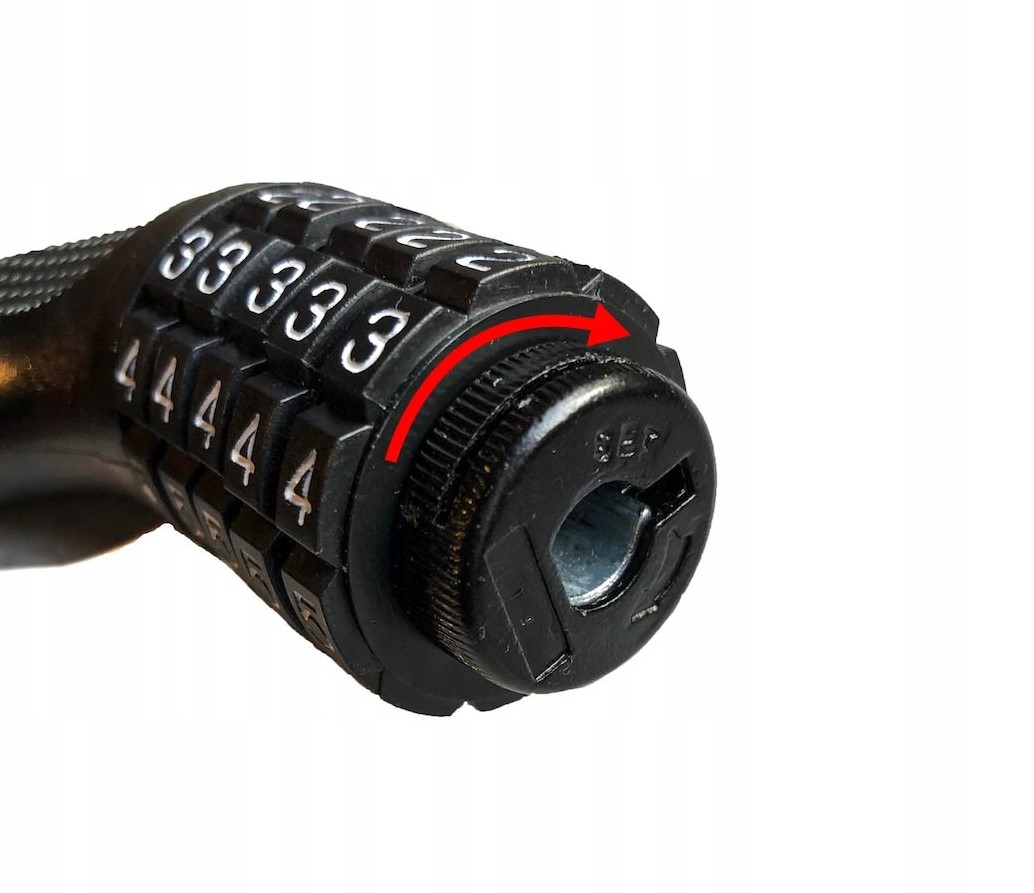 Zdjęcie poglądowe obsługi pokrętła do zmiany szyfru znajduje się w galerii zdjęć