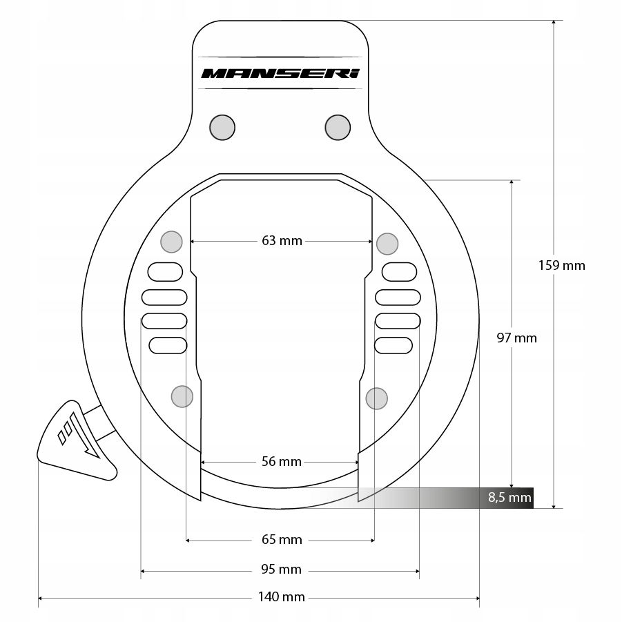 - Mocna stalowy bolec o średnicy 8,5 mm bezpiecznie blokuje tylne koło