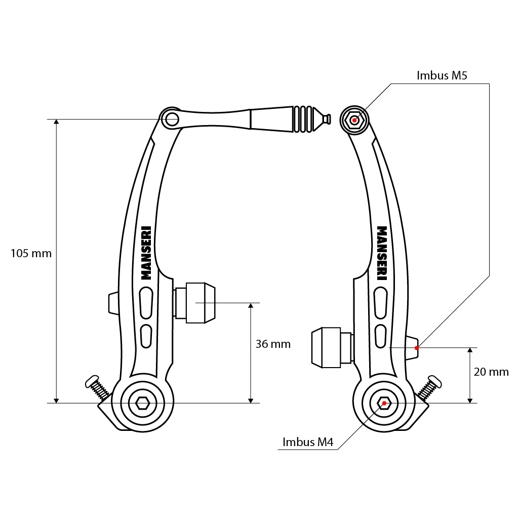 Hamulec rowerowy V-brake Manseri AVB-10BK
