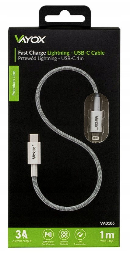 Kabel USB-C – Lightning 20W 3A 1m Premium Line VA0106 Vayox