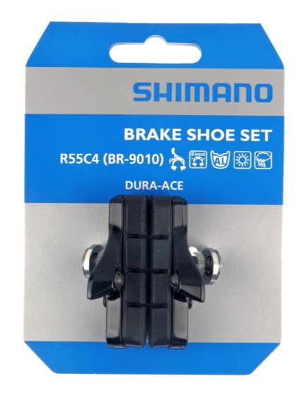 Okładziny hamulcowe Shimano Dura-Ace R55C4 (BR-9010) to wysokiej jakości szczękowe wkładki hamulcowe dedykowane do rowerów szosowych, zaprojektowane dla maksymalnej wydajności w wyścigowych warunkach. Kompatybilne z obręczami aluminiowymi, zapewniają precyzyjne hamowanie oraz długą żywotność.