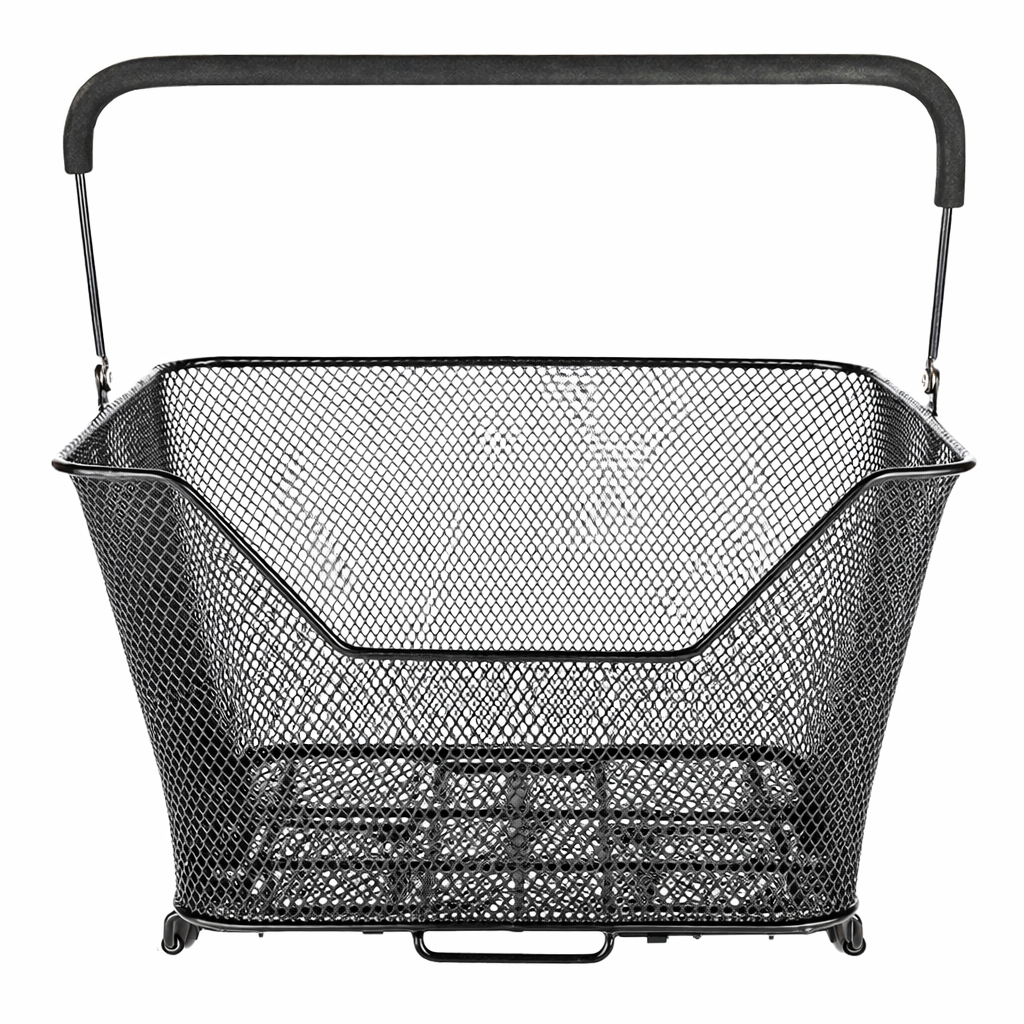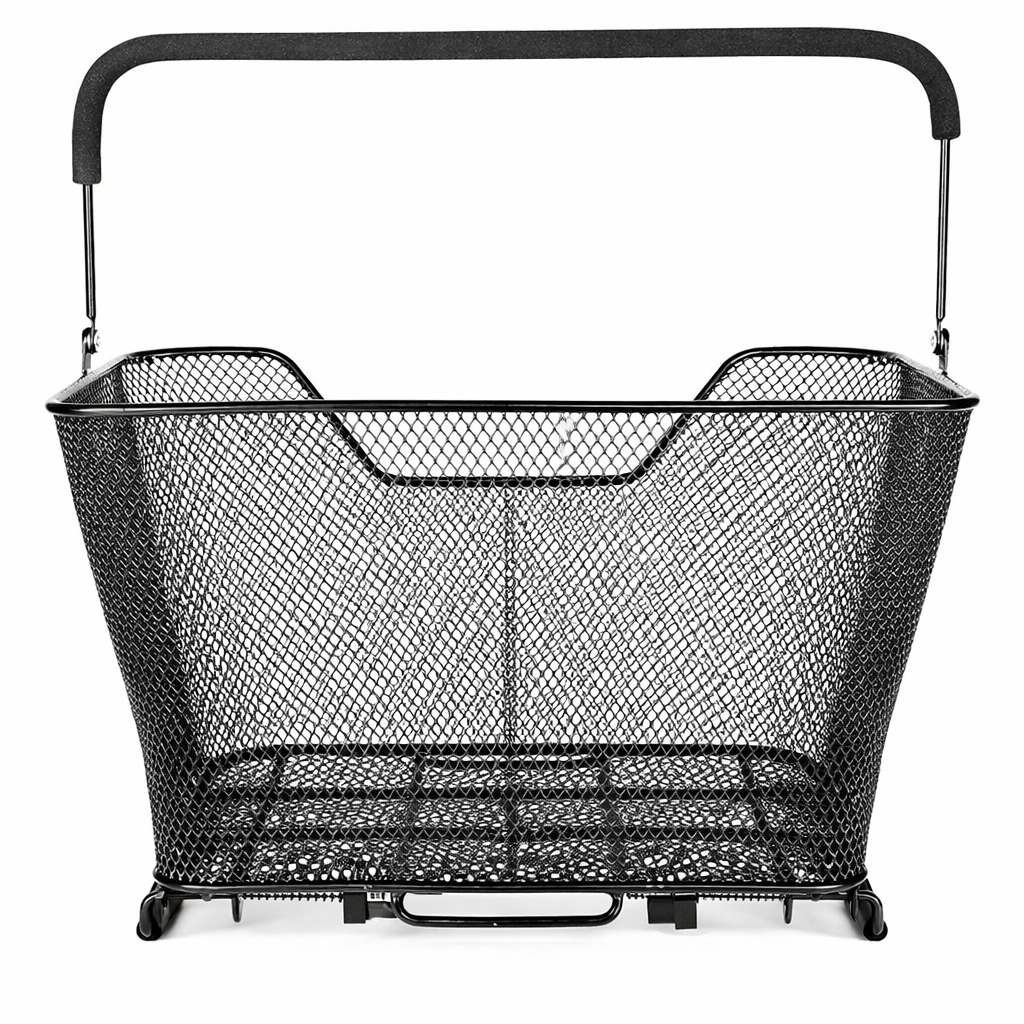 Około 18 litrów pojemności – dużo miejsca do przewozu bagażu, plecaka lub zakupów, a wygodny, obity gumową osłoną uchwyt kosza pozwala nam bez problemowo przenieść koszyk wraz z zawartością lub użyć koszyka w trakcie zakupów.