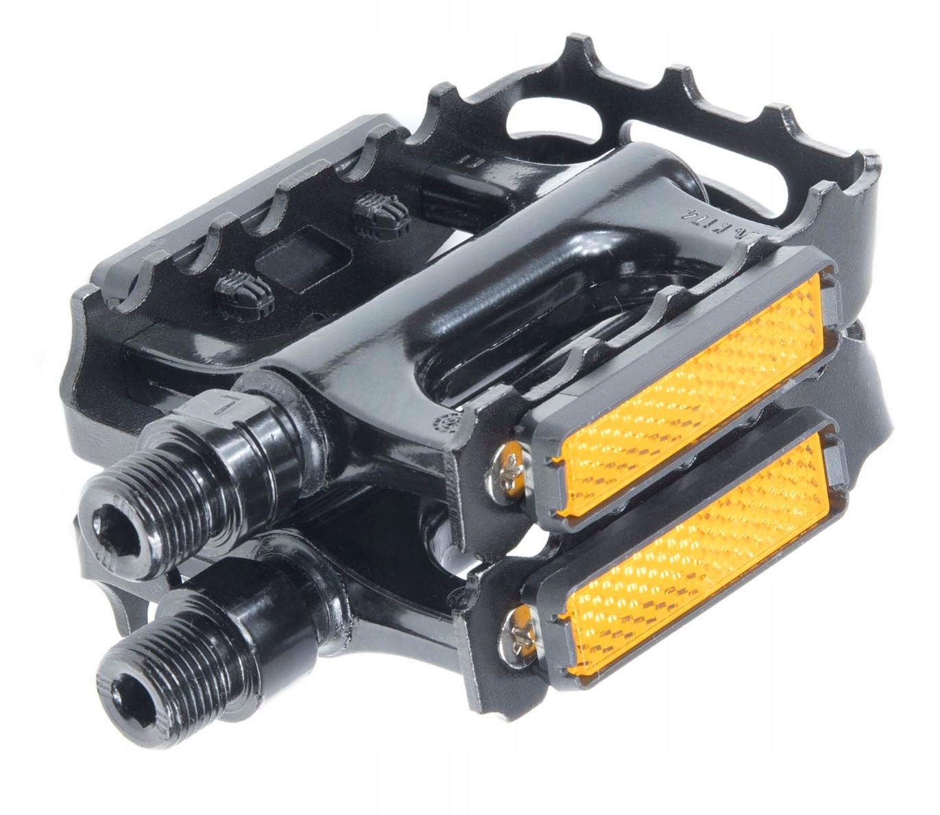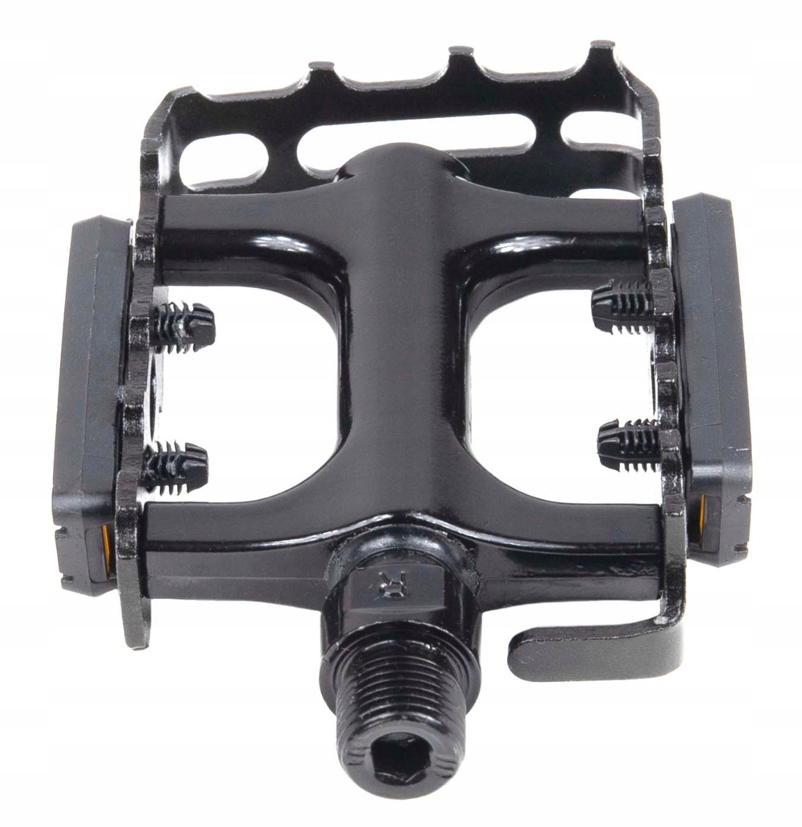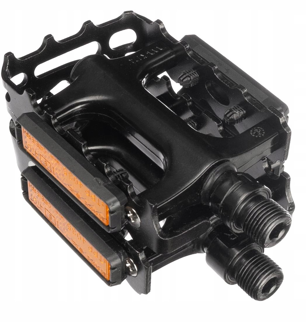 - Aluminiowa klatka oraz korpus pedałów pozwalają zachować niewielką wagę kompletu jednocześnie nie tracąc na wytrzymałości pedałów