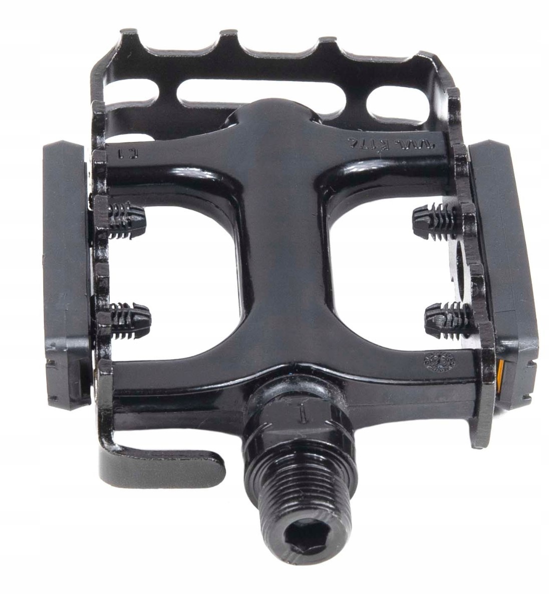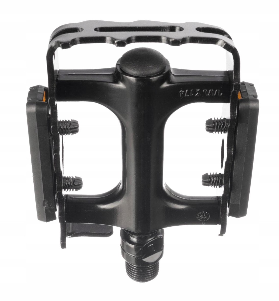 - Duża platforma o wymiarach 108 x 79 mm, wyposażona w wypustki pozwalające na lepsze zaczepienie stopy do pedała, co zwiększa komfort oraz bezpieczeństwo na trudniejszych etapach podróży