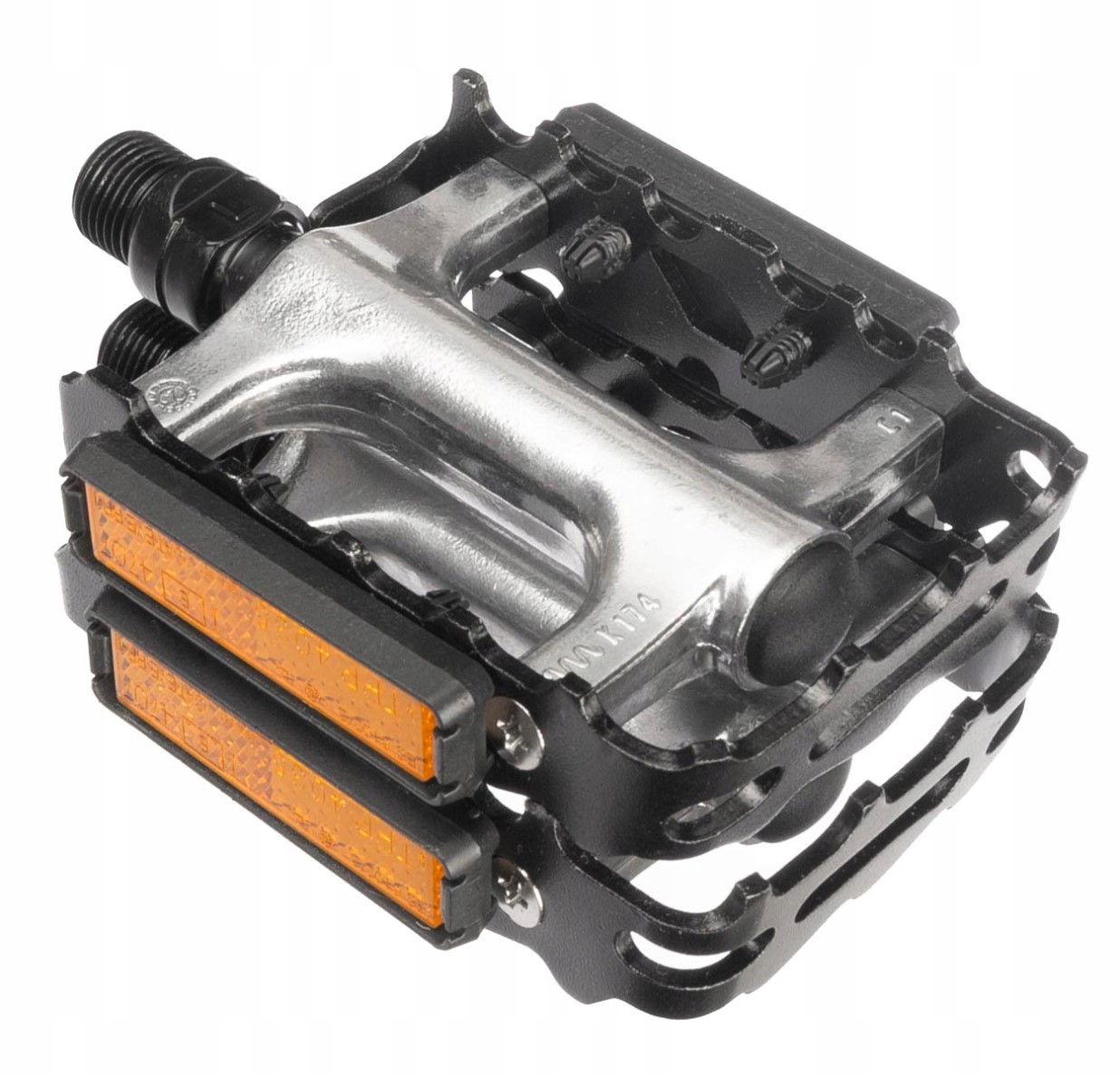 • Duża platforma o wymiarach 108 x 79 mm, wyposażona w wypustki pozwalające na lepsze zaczepienie stóp do pedałów