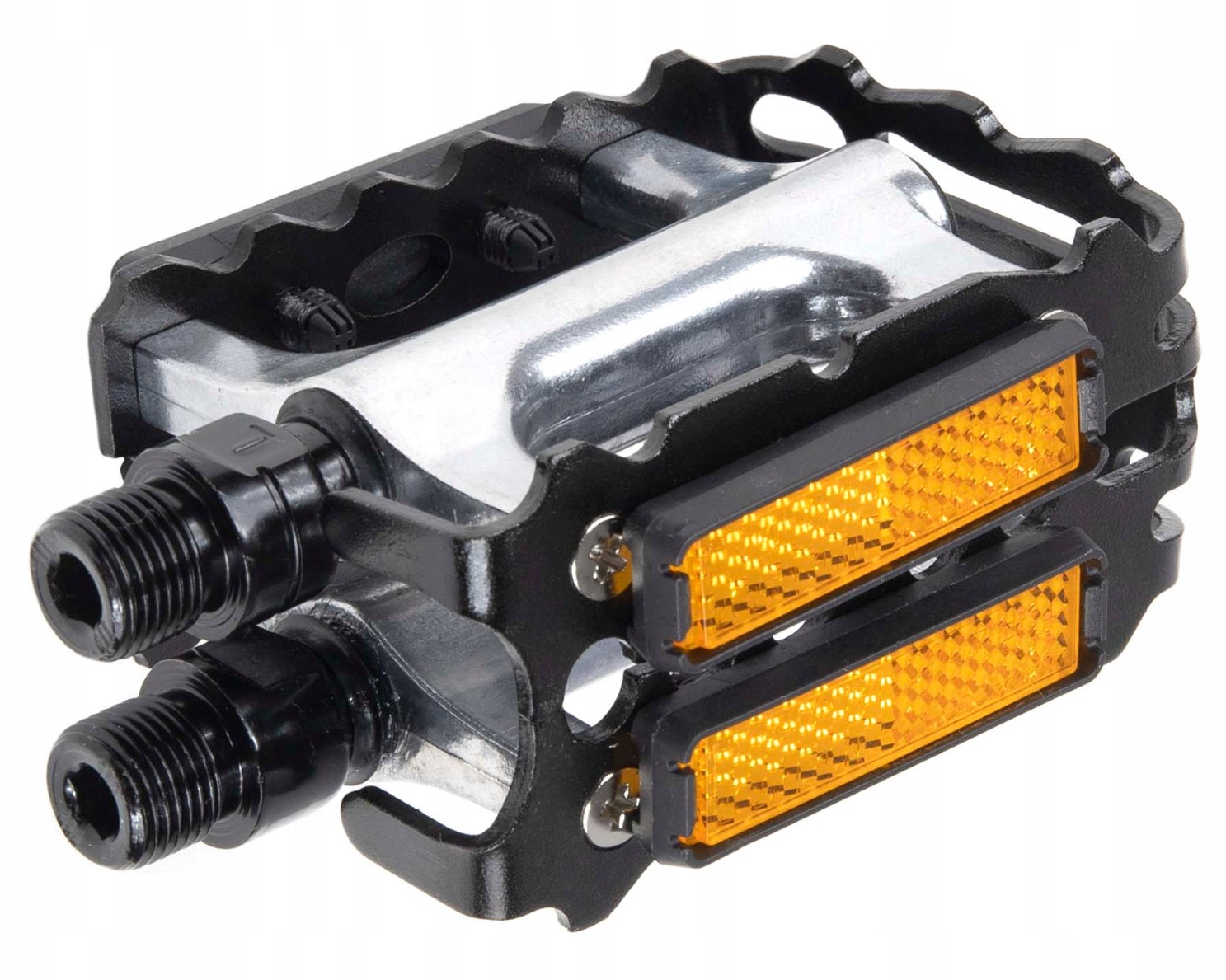 • Aluminiowy korpus oraz klatka pedałów pozwalają zachować niewielką wagę kompletu jednocześnie nie tracąc na wytrzymałości pedałów