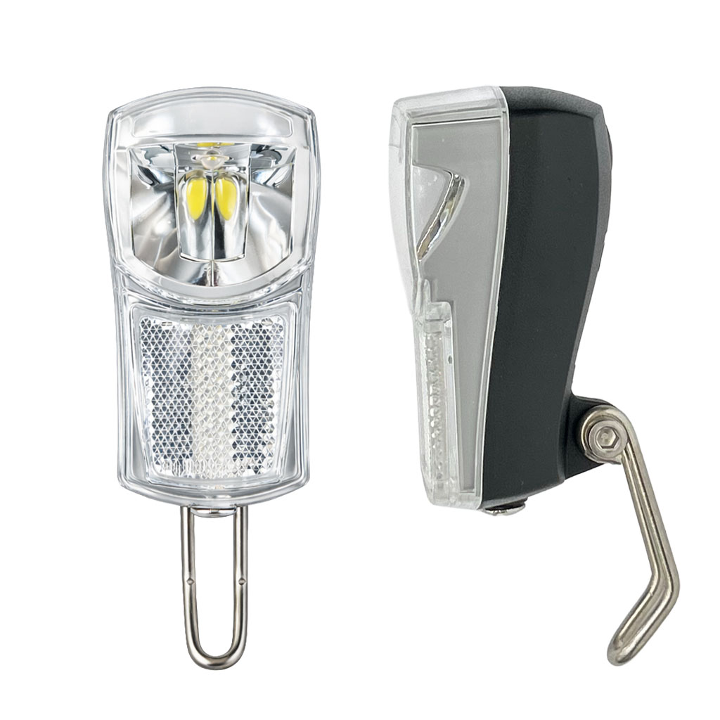 Lampa montowana jest bezpośrednio na widelcu roweru. Takie rozwiązanie zapewnia stabilność oraz odpowiednie ustawienie światła podczas jazdy. Co ważne, montaż jest szybki i prosty. Dzięki temu użytkownik może bez problemu przygotować rower do drogi w krótkim czasie. Ponadto stabilne mocowanie ogranicza drgania, co przekłada się na cichą i płynną pracę lampy.
