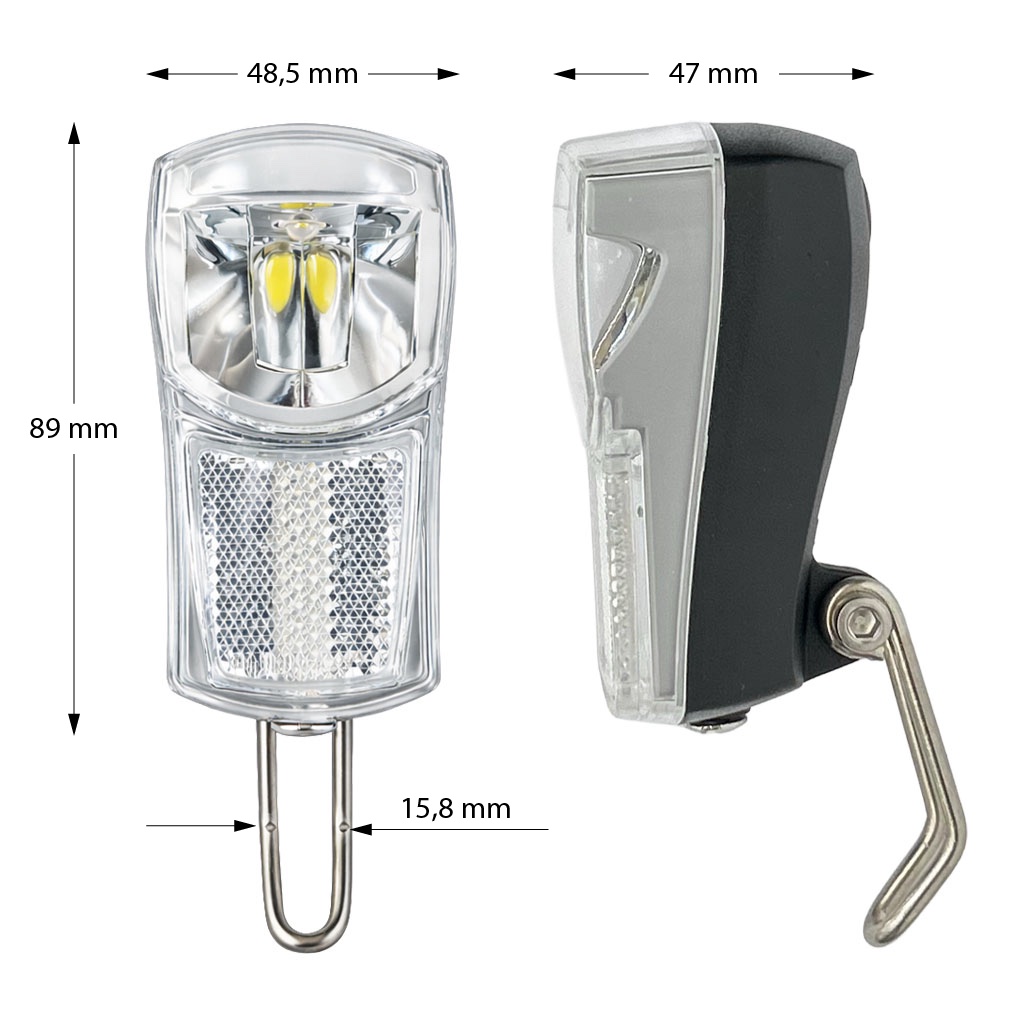 Widzisz wyraźnie i jeździsz bezpiecznie po zmroku dzięki naszej mocnej lampce rowerowej. Jedna, bardzo jasna LED emituje jasną wiązkę światła o mocy 60 Lm, która oświetla Twoją ścieżkę, dzięki czemu możesz bezpiecznie jeździć nocą i w gorszych warunkach pogodowych. Odporna na warunki atmosferyczne obudowa IPX3 jest odporna na zachlapania i deszczową pogodę, więc nie musisz skracać podróży.