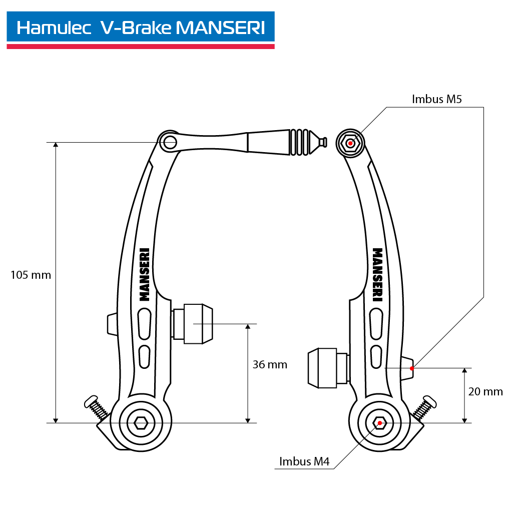 Zestaw hamulcowy MANSERI V-Brake – Kompletny zestaw do rowerów MTB, trekkingowych i miejskich